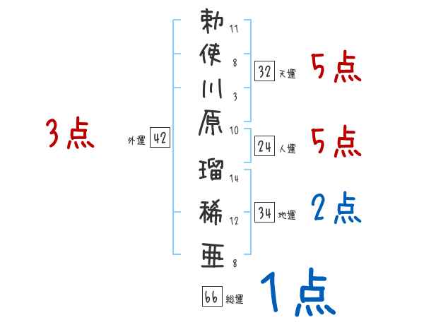 勅使川原瑠稀亜さんの画数の鑑定結果