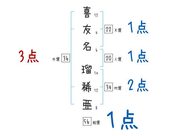 喜友名瑠稀亜さんの画数の鑑定結果