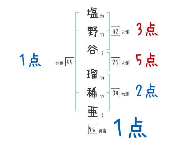 塩野谷瑠稀亜さんの画数の鑑定結果