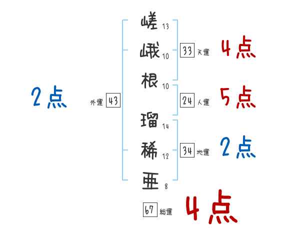 嵯峨根瑠稀亜さんの画数の鑑定結果