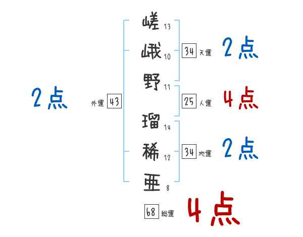 嵯峨野瑠稀亜さんの画数の鑑定結果