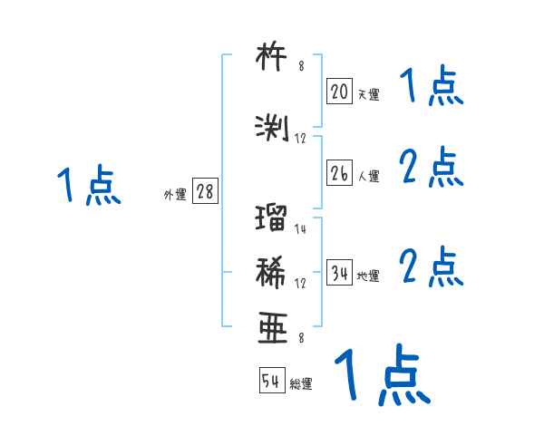 外運![]() | 杵渕瑠稀亜さんの外運は28画の1つ星!家庭環境に注意。スポーツで活躍できる能力があるかも。 生活面を象徴する運勢です。外部から受ける影響力を表し、結婚運、家庭運や職場、環境への順応性を表します。 |