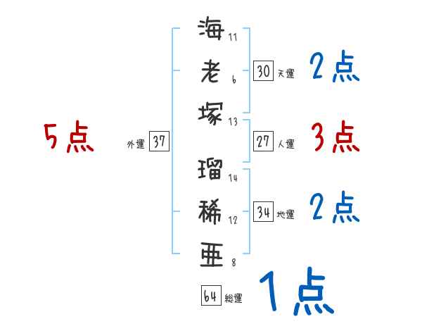外運![]() | 海老塚瑠稀亜さんの外運は37画の5つ星!努力家で順応性に優れる。現実的な考え方ができ忠実に物事をこなす。 生活面を象徴する運勢です。外部から受ける影響力を表し、結婚運、家庭運や職場、環境への順応性を表します。 |