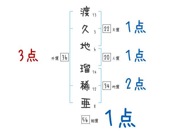 渡久地瑠稀亜さんの画数の鑑定結果