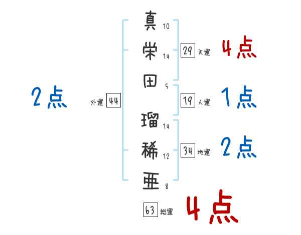 天運![]() | 真栄田瑠稀亜さんの天運は29画の4つ星!完全主義で才能がある。厳格な心の持ち主。 家系が持つ宿命的な運勢を表します。祖先から受け継いだ苗字ですので自分の力が及びません。家柄を象徴します。 |
