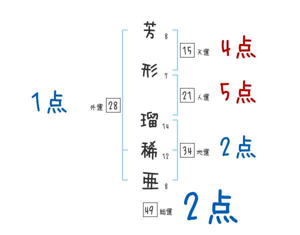 外運![]() | 芳形瑠稀亜さんの外運は28画の1つ星!家庭環境に注意。スポーツで活躍できる能力があるかも。 生活面を象徴する運勢です。外部から受ける影響力を表し、結婚運、家庭運や職場、環境への順応性を表します。 |
