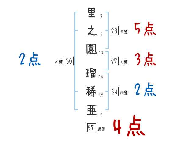 里之園瑠稀亜さんの画数の鑑定結果