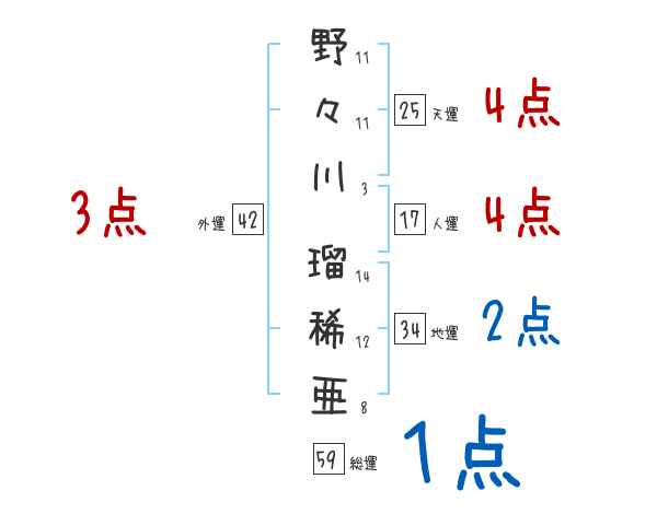 野々川瑠稀亜さんの画数の鑑定結果