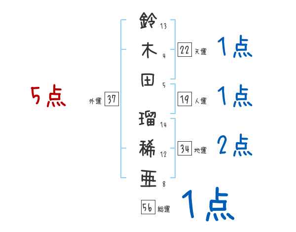 鈴木田瑠稀亜さんの画数の鑑定結果