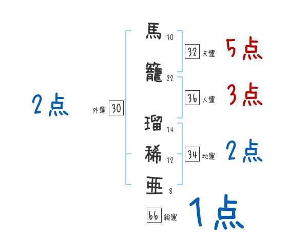 天運![]() | 馬籠瑠稀亜さんの天運は32画の5つ星!柔軟性があり成功する。チャンスが多く金運が良い。 家系が持つ宿命的な運勢を表します。祖先から受け継いだ苗字ですので自分の力が及びません。家柄を象徴します。 |
