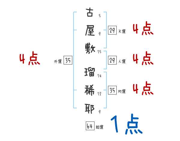 古屋敷瑠稀耶さんの画数の鑑定結果