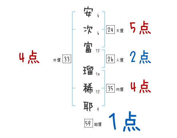 安次富瑠稀耶さんの画数の鑑定結果