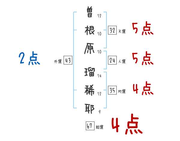 曽根原瑠稀耶さんの総運は67画の4つ星