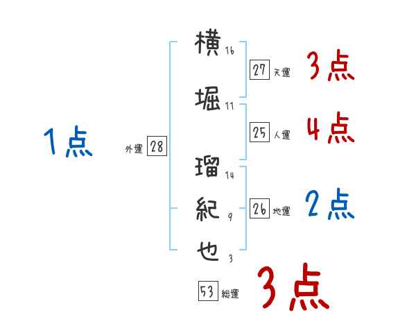 外運![]() | 横堀瑠紀也さんの外運は28画の1つ星!家庭環境に注意。スポーツで活躍できる能力があるかも。 生活面を象徴する運勢です。外部から受ける影響力を表し、結婚運、家庭運や職場、環境への順応性を表します。 |