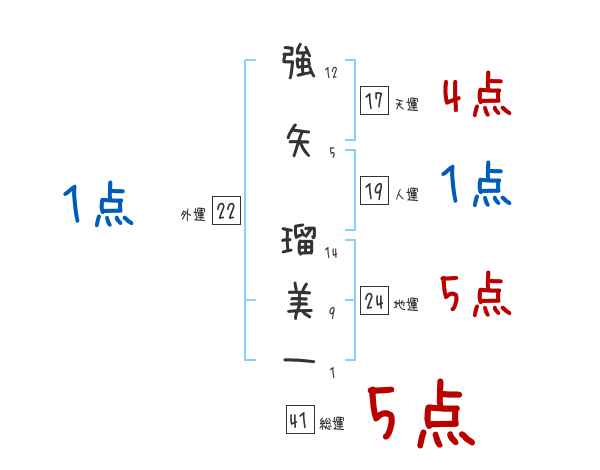 強矢瑠美一さんの画数の鑑定結果