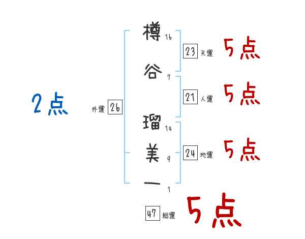 樽谷瑠美一さんの画数の鑑定結果