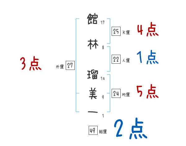 外運![]() | 館林瑠美一さんの外運は27画の3つ星!頭脳明晰だが強情で摩擦が多い傾向。孤立に注意。 生活面を象徴する運勢です。外部から受ける影響力を表し、結婚運、家庭運や職場、環境への順応性を表します。 |