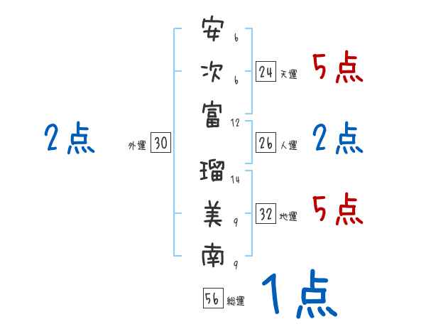 安次富瑠美南さんの画数の鑑定結果