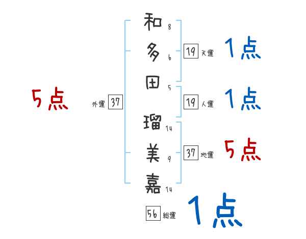 外運![]() | 和多田瑠美嘉さんの外運は37画の5つ星!努力家で順応性に優れる。現実的な考え方ができ忠実に物事をこなす。 生活面を象徴する運勢です。外部から受ける影響力を表し、結婚運、家庭運や職場、環境への順応性を表します。 |