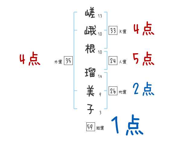 嵯峨根瑠美子さんの総運は59画の1つ星