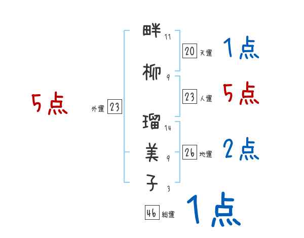 外運![]() | 畔柳瑠美子さんの外運は23画の5つ星!想像力に優れ活力がある。一代で成功し名誉を手に入れる。 生活面を象徴する運勢です。外部から受ける影響力を表し、結婚運、家庭運や職場、環境への順応性を表します。 |