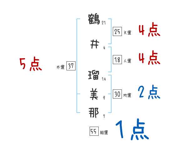 鶴井瑠美那さんの画数の鑑定結果