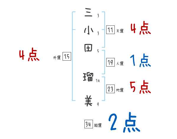三小田瑠美さんの画数の鑑定結果