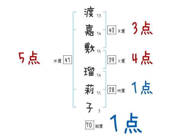 渡嘉敷瑠莉子さんの画数の鑑定結果
