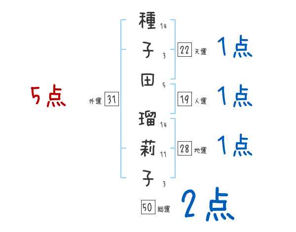 種子田瑠莉子さんの画数の鑑定結果