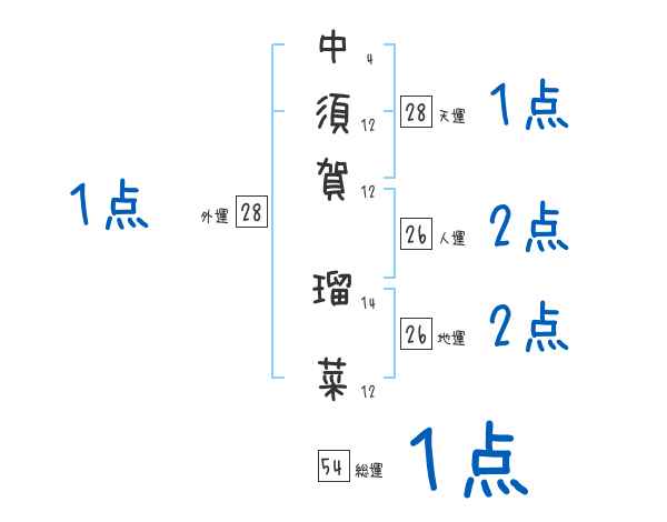 中須賀瑠菜さんの画数の鑑定結果