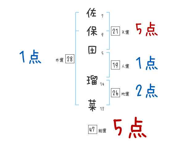 天運![]() | 佐保田瑠菜さんの天運は21画の5つ星!統率力がある。独立し成功する。名誉を手に入れる。 家系が持つ宿命的な運勢を表します。祖先から受け継いだ苗字ですので自分の力が及びません。家柄を象徴します。 |