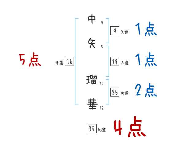 中矢瑠華さんの画数の鑑定結果