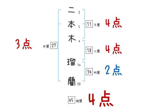 二本木瑠藺さんの画数の鑑定結果