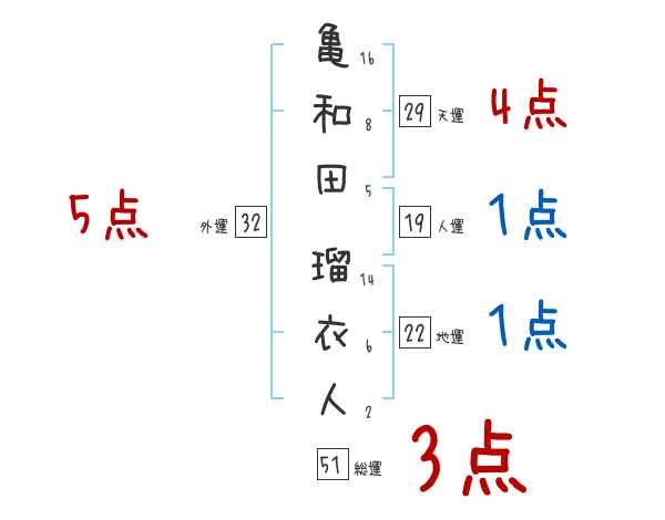 亀和田瑠衣人さんの画数の鑑定結果