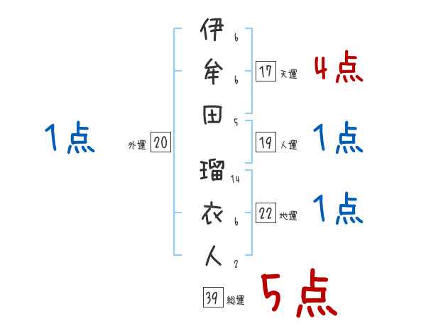 伊牟田瑠衣人さんの画数の鑑定結果
