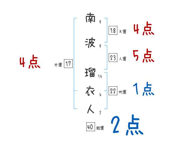 人運![]() | 南波瑠衣人さんの人運は23画の5つ星!想像力に優れ活力がある。一代で成功し名誉を手に入れる。 性格や才能などを表す2番目に重要な運勢です。人間関係や協調性、社会的な成功に影響します。主に20歳から50歳ぐらいまでの中年期の運勢を表します。 |