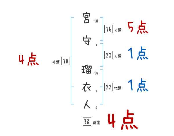 宮守瑠衣人さんの画数の鑑定結果