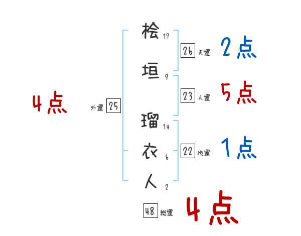 桧垣瑠衣人さんの画数の鑑定結果