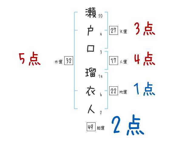 瀬戸口瑠衣人さんの画数の鑑定結果