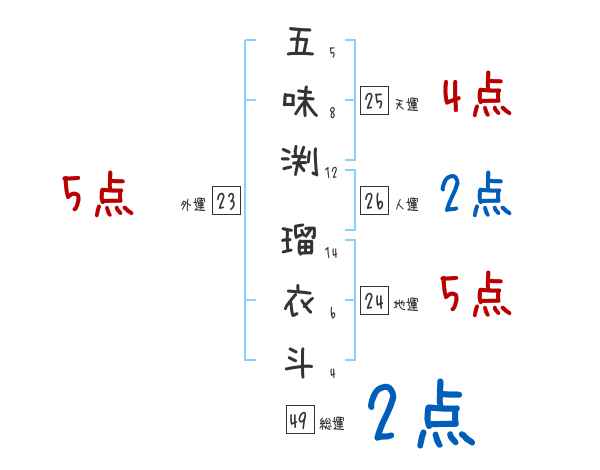 五味渕瑠衣斗さんの画数の鑑定結果