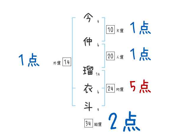 今仲瑠衣斗さんの画数の鑑定結果