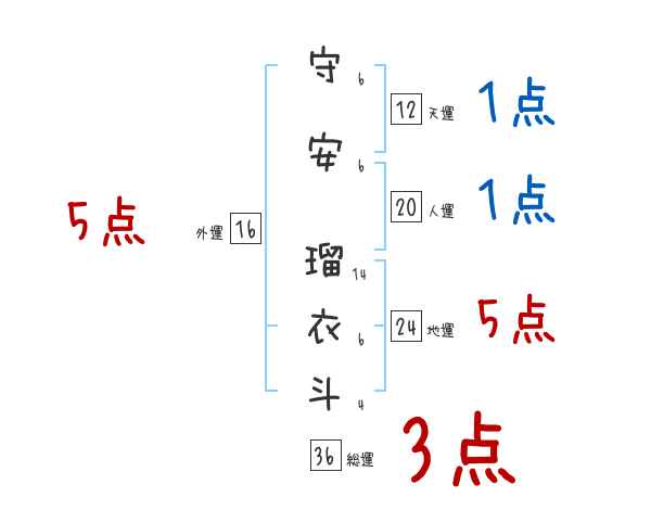 総運![]() | 守安瑠衣斗さんの総運は36画の3つ星!先見性が豊かです。多少神経質で苦労することも。 あなたの人生を表す1番重要な運勢です。生涯を通じて影響する総合運となり、主に50歳以降の晩年期に影響を及ぼします。 |