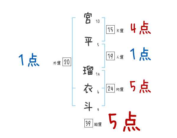 宮平瑠衣斗さんの画数の鑑定結果