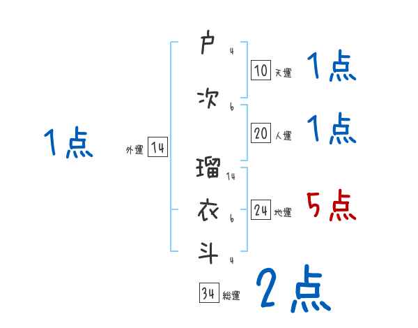 外運![]() | 戸次瑠衣斗さんの外運は14画の1つ星!人に対して優しいがストレスを溜め込みがち。人間関係のトラブルを避けるよう気をつけましょう。 生活面を象徴する運勢です。外部から受ける影響力を表し、結婚運、家庭運や職場、環境への順応性を表します。 |