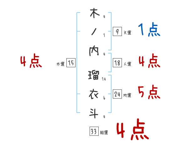 木ノ内瑠衣斗さんの画数の鑑定結果