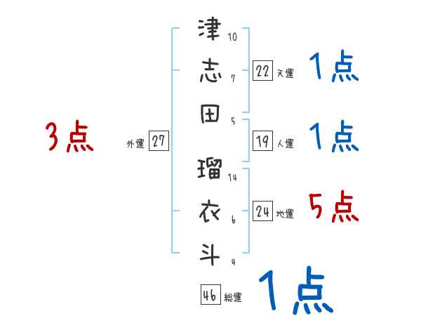 外運![]() | 津志田瑠衣斗さんの外運は27画の3つ星!頭脳明晰だが強情で摩擦が多い傾向。孤立に注意。 生活面を象徴する運勢です。外部から受ける影響力を表し、結婚運、家庭運や職場、環境への順応性を表します。 |