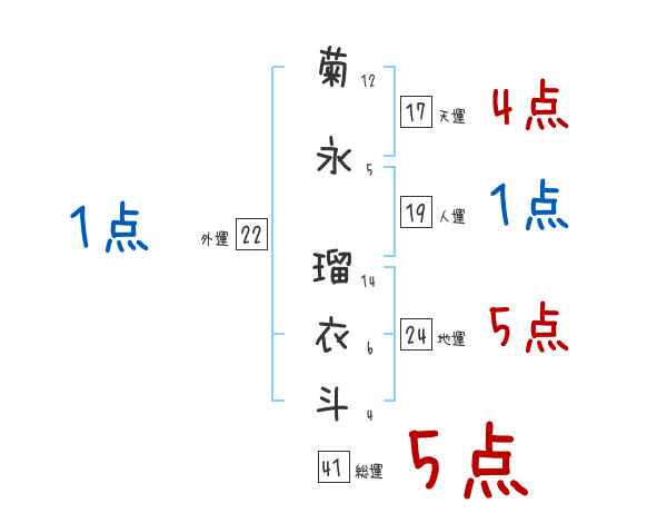 外運![]() | 菊永瑠衣斗さんの外運は22画の1つ星!努力することが苦手ないっぽう手先が器用。芸術性にも優れる。 生活面を象徴する運勢です。外部から受ける影響力を表し、結婚運、家庭運や職場、環境への順応性を表します。 |