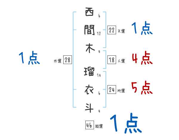 外運![]() | 西間木瑠衣斗さんの外運は28画の1つ星!家庭環境に注意。スポーツで活躍できる能力があるかも。 生活面を象徴する運勢です。外部から受ける影響力を表し、結婚運、家庭運や職場、環境への順応性を表します。 |