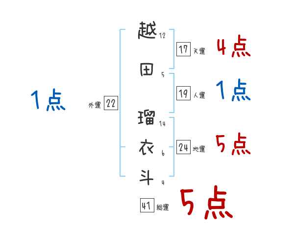 越田瑠衣斗さんの画数の鑑定結果