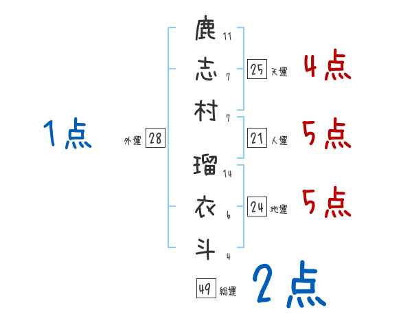 鹿志村瑠衣斗さんの画数の鑑定結果